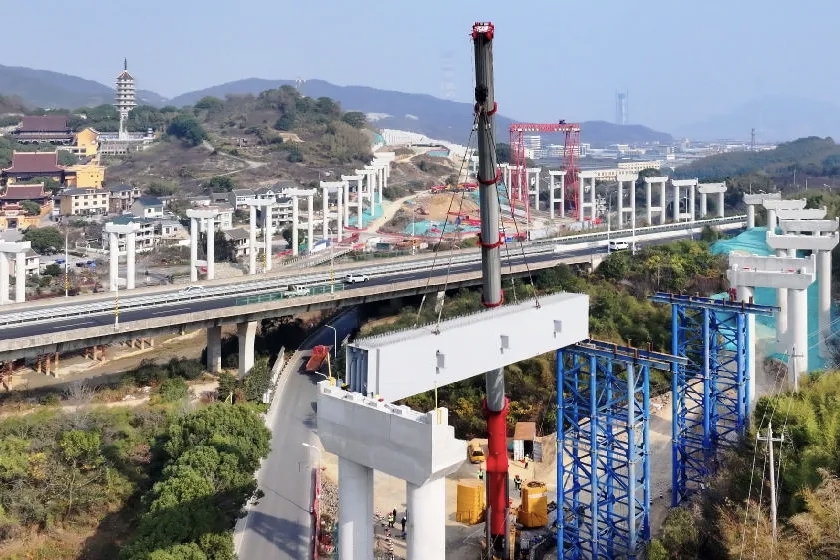 近期,跟着临了一派预制T梁精确落位,东岙大桥238片梁板一谈架设完成。“这座大桥控制各有17跨,咱们选用一台自均衡架桥机开展全幅、连气儿机械化架设,团踏及时监测系统与智能纠偏安设,杀青了梁体吊装、横移、就位全程毫米级精度为止。”模式现场进展东谈主先容,跟着梁板架设完成,大桥设立将全面转入桥面系施工阶段。