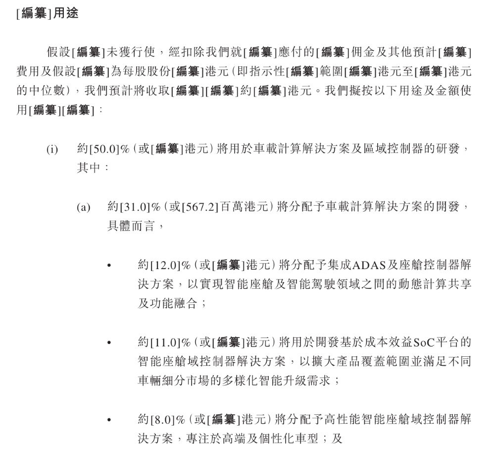 车联天下在上市申请书中提到,此次募资所得款项预计将用于车载计算解决方案及区域控制器的研发、加强AI能力、开发下一代区域控制器和加强国际化能力与生产能力等方面。